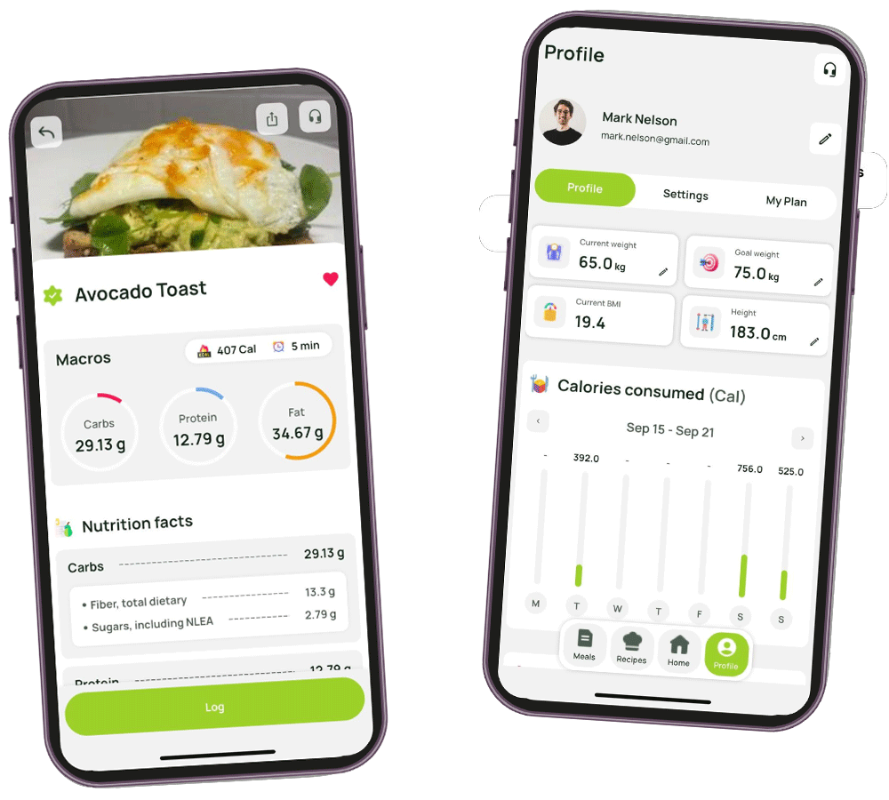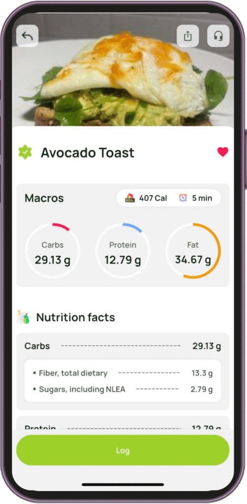 Instantly calculates calories and macros from text, photos, or barcodes.